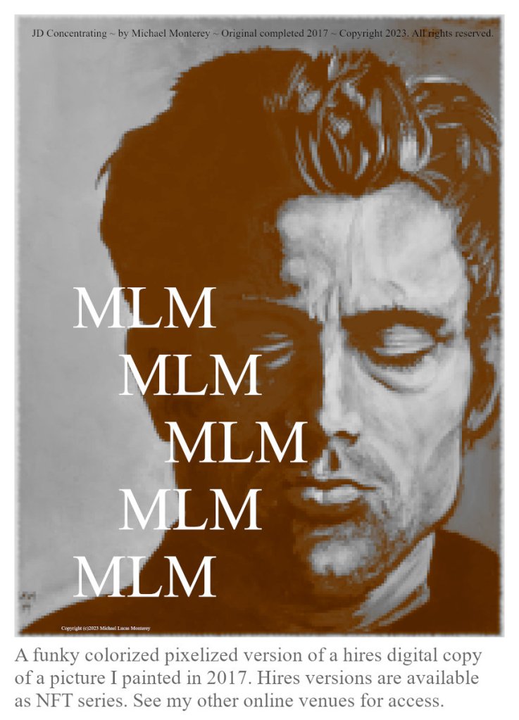 Edition 1: There will be 11 NFTs in the series of the largest (20″ x 25.5″ image) copies of the portrait (“JD Concentrating”), at 1250 ppi resolution.